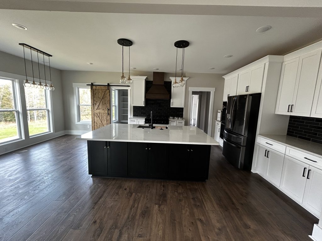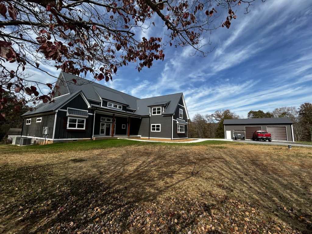This beautiful house plan with detailed personal touches from the homeowners turned out stunning. This was our second time building this house for the family; the first was in 2019, and the second in 2024. Matching barn, metal roof, large freestanding tub in an extravagant bathroom, faux living room beams, and so many more unique additions made for a lovely final product.